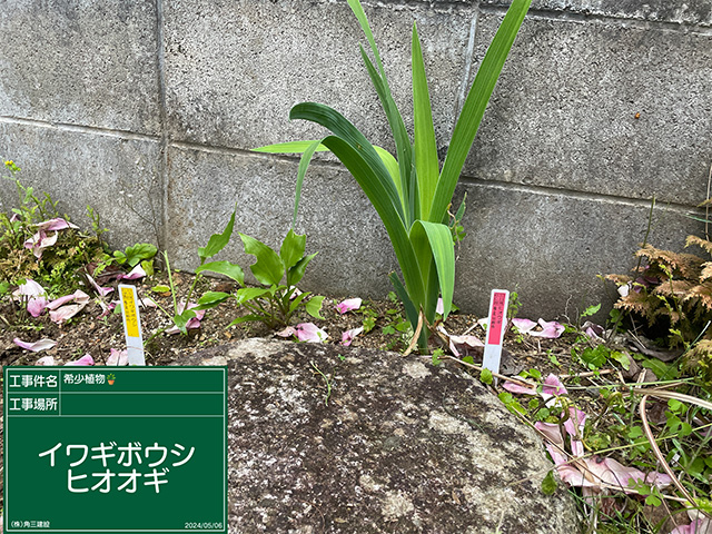 写真は希少植物の「イワギボウシ」「ヒオウギ」です。